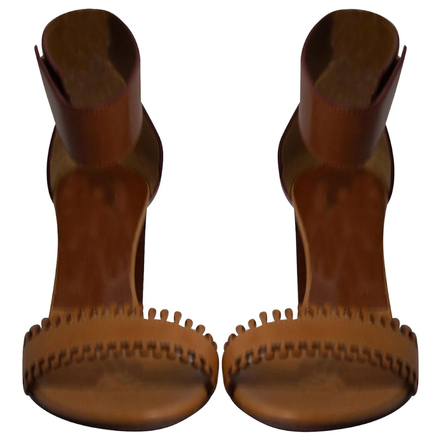 L’esthétique intemporelle et le savoir-faire stellaire de Chloé dans la fabrication de chaussures sont évidents dans ces superbes escarpins.. Fabriqué à partir de cuir dans une teinte brun clair, ils ont des orteils ouverts et sont surélevés sur des talons épais sécurisés par des sangles de cheville.