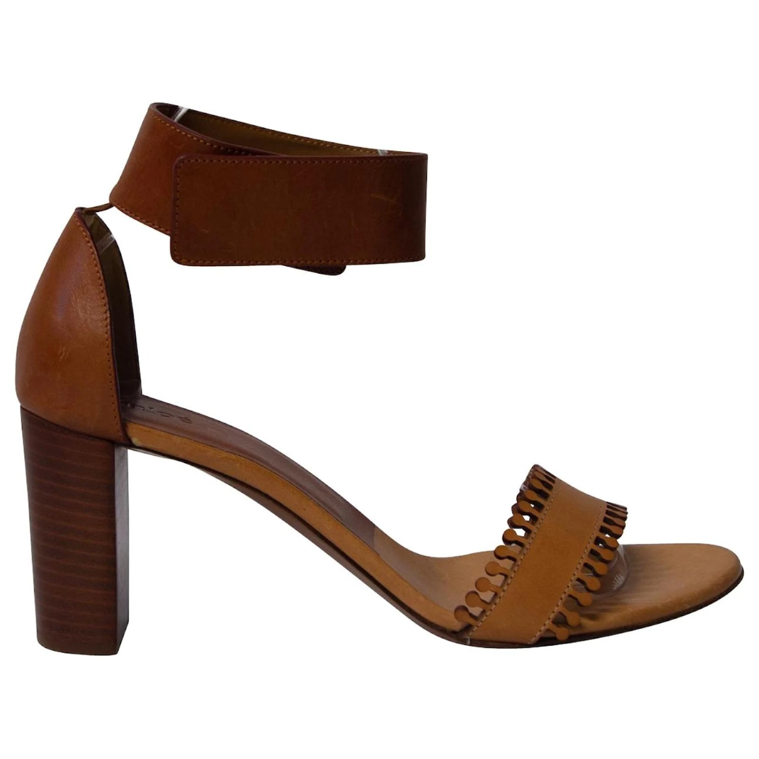 Chloe Ankle Open Toe Block Sandals en Cuir Marron Tan