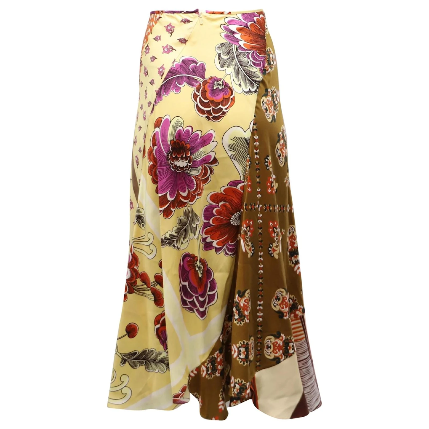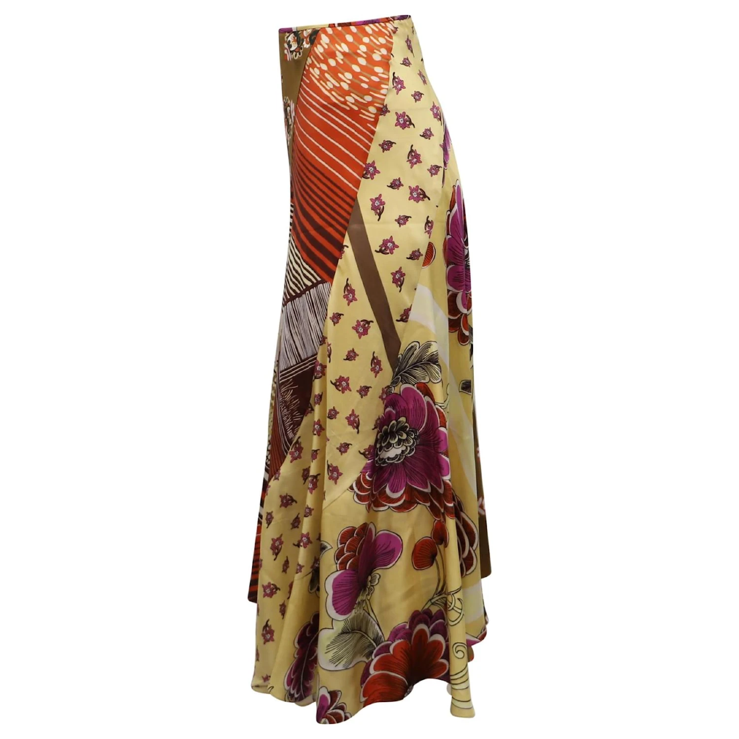 Article fabriqué en soie dans une silhouette midi avec un, drapé en spirale, cette jupe dévoile un assemblage de neuf foulards à l’imprimé caravane lumineux pour un esprit bohème. Les chevaux d’élevage de la Maison ajoutent une touche signature.