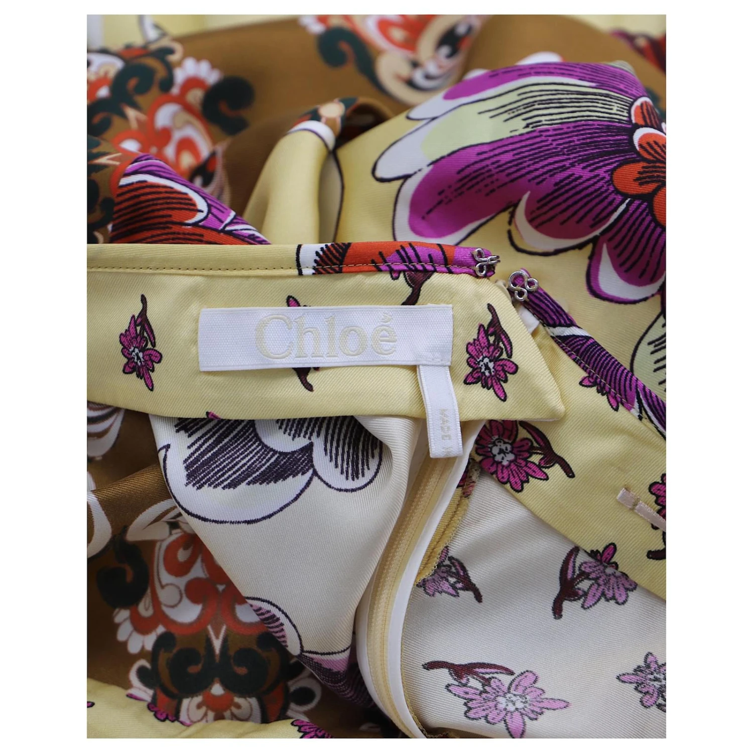 Chloe Jupe mi-longue à imprimé caravane coupe spirale en soie multicolore