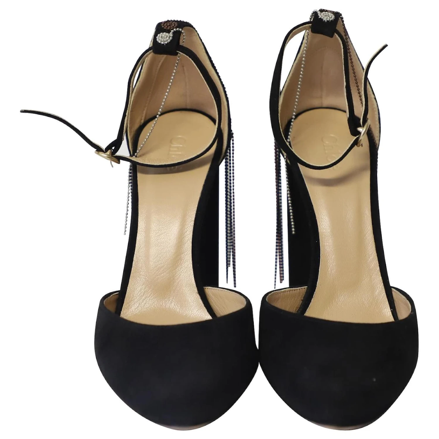Chloe Liv D’Orsay Escarpins à Bride Cheville Ornés de Perles en Daim Noir