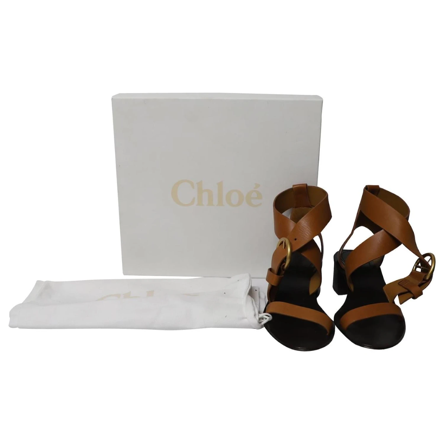 Chloe Nils Sandales à Talons Blocs en Cuir Marron