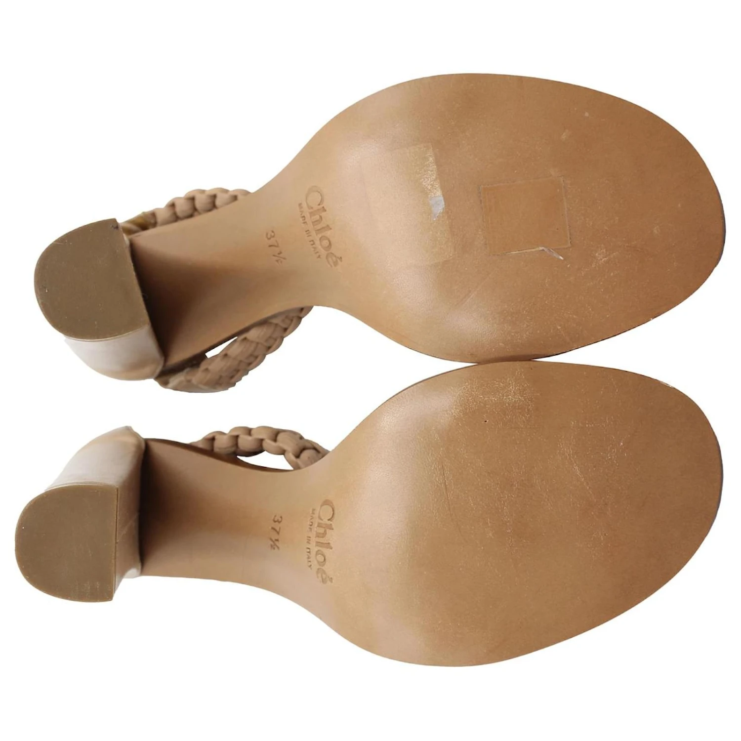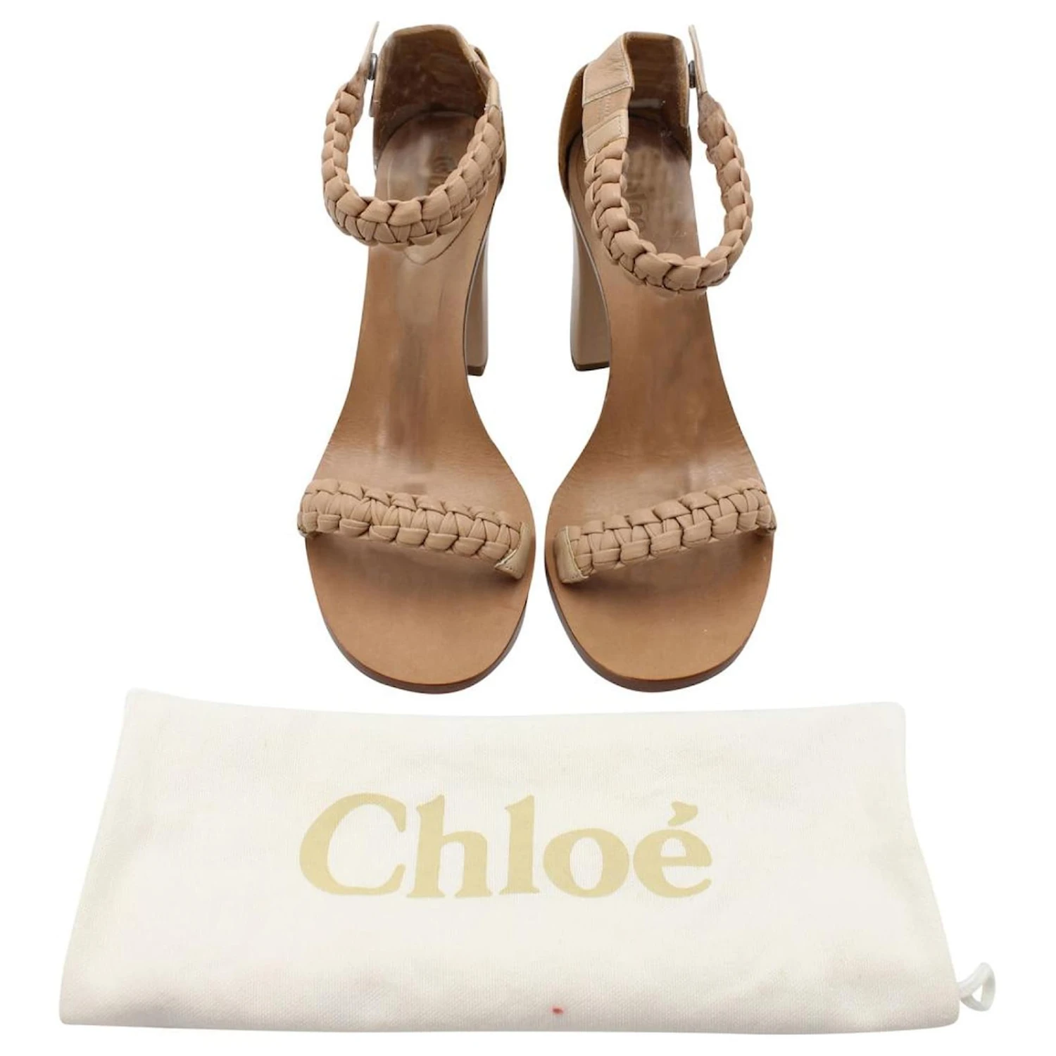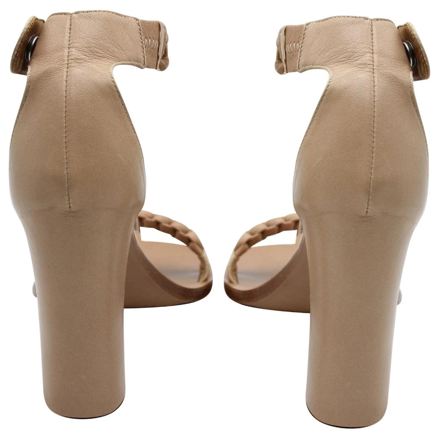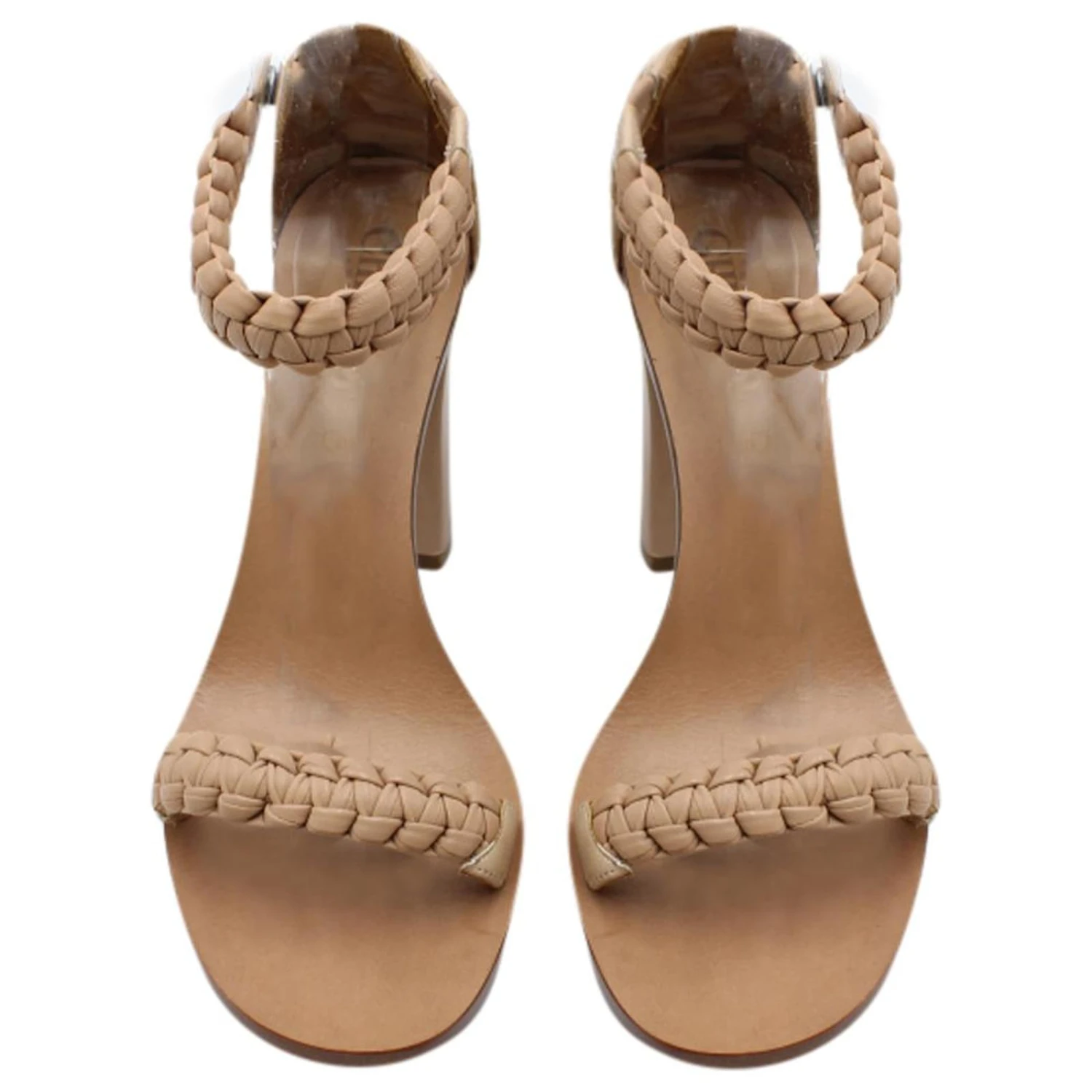 Chloe Sandales à Talons Hauts avec Bretelles en Macramé en Cuir Beige
