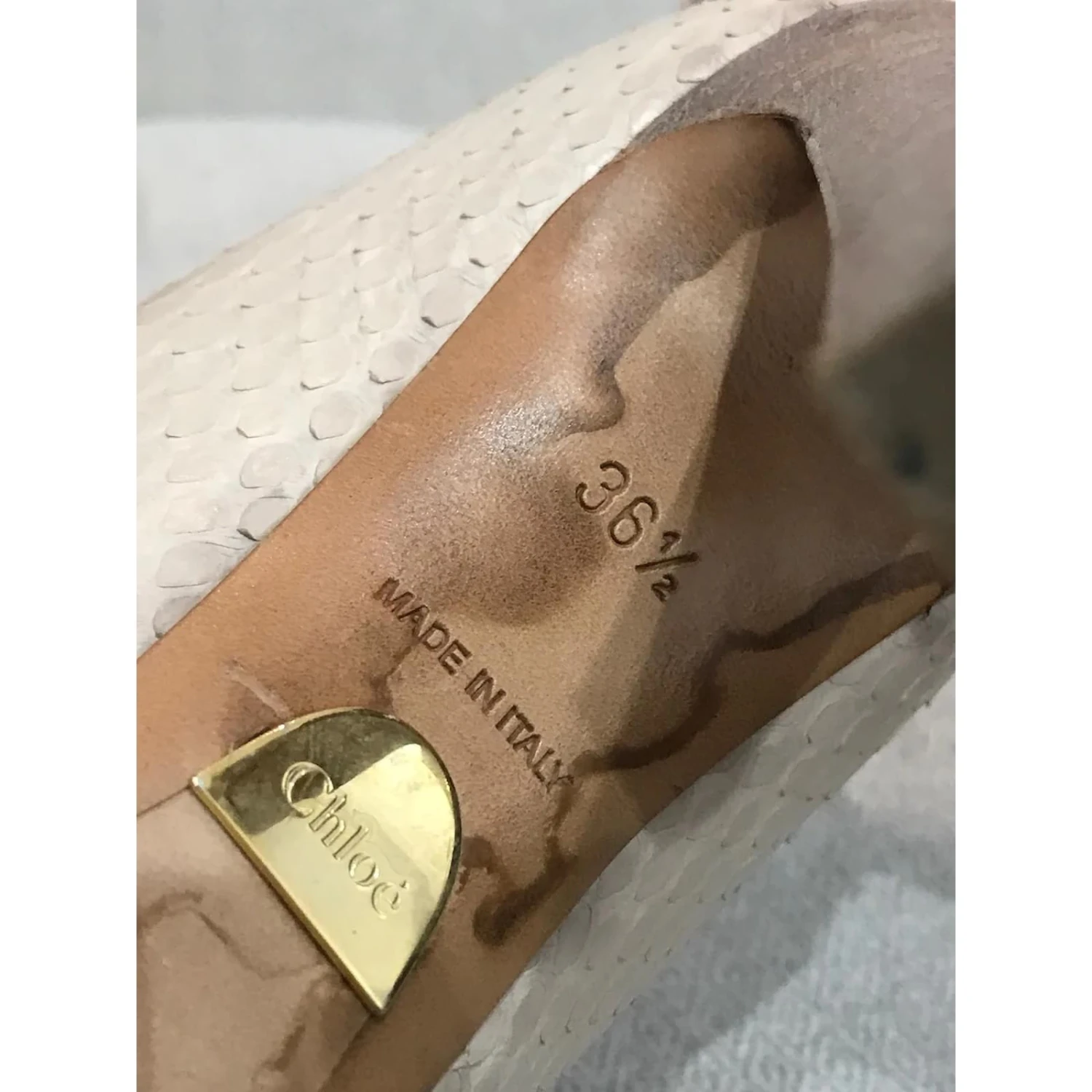 Escarpins Chloé, size 36.5. Escarpins en python beige clair. Hauteur talon 10 cm. Bon état : quelques marques (see photo).