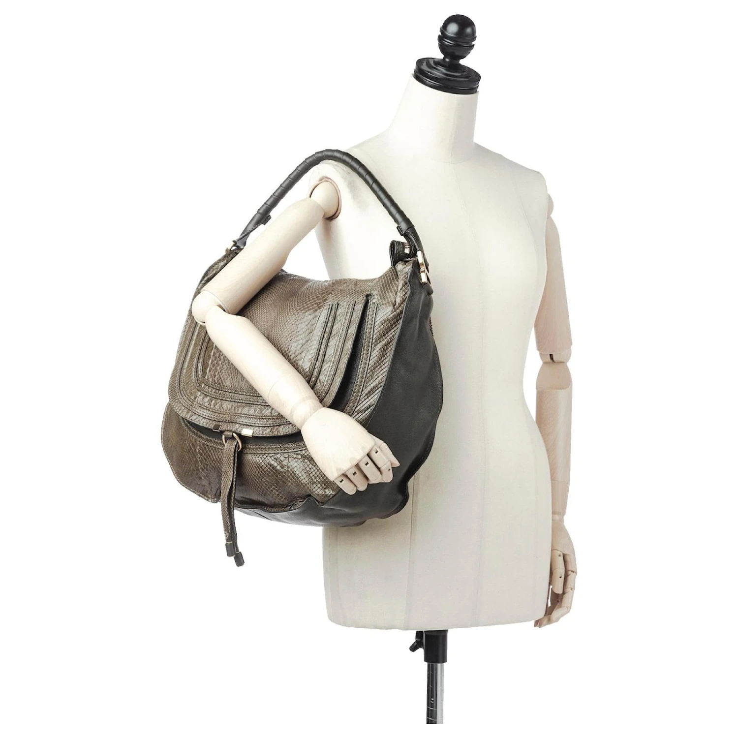 Le Marcie en cuir de python, un bracelet en cuir roulé, une fermeture à glissière, et une poche intérieure zippée. Il porte une cote B + condition.