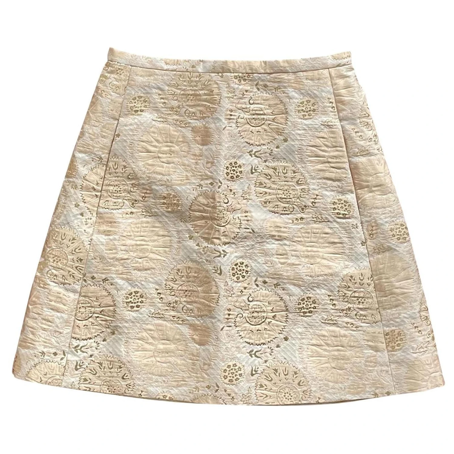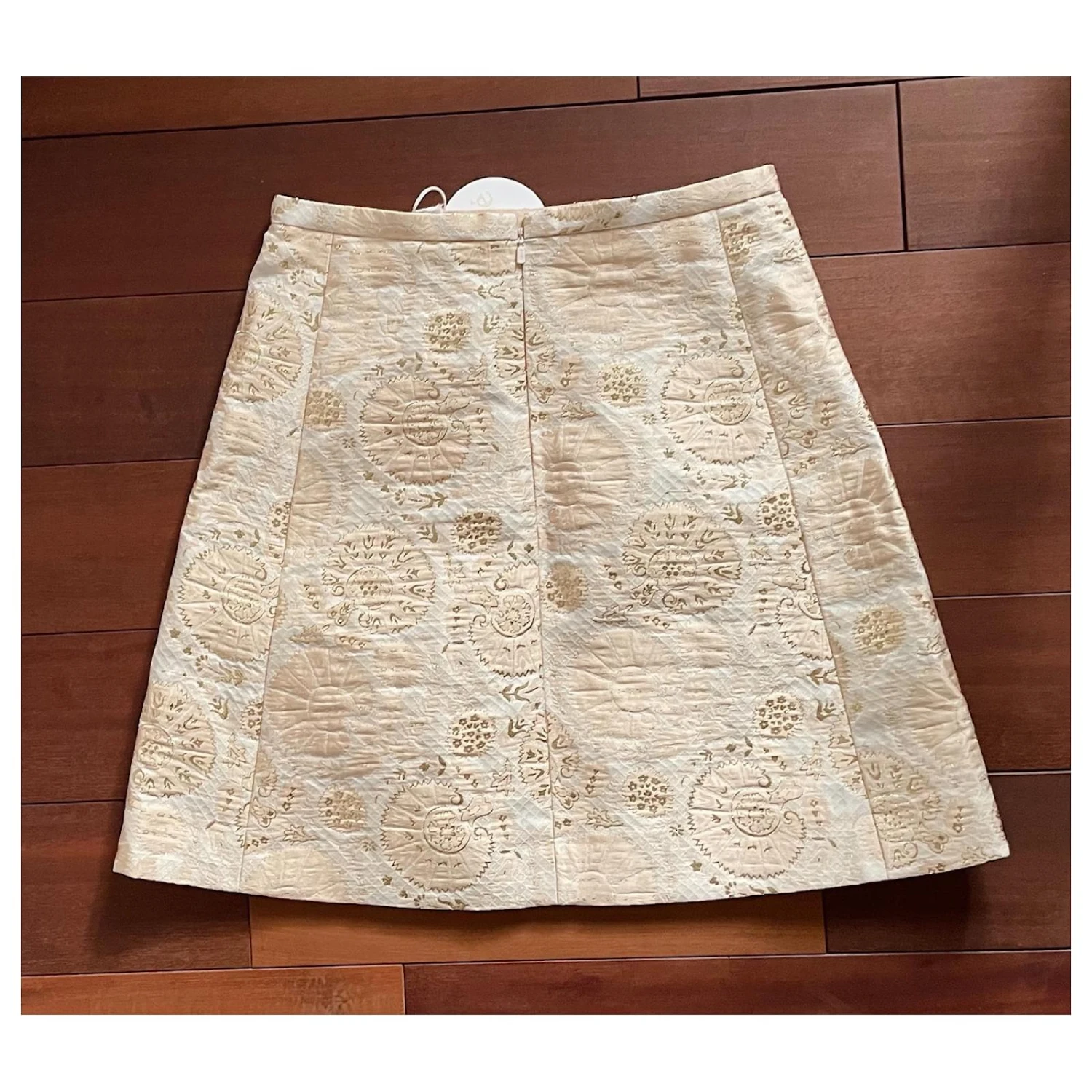 Mini jupe Chloé en brocard de soie écru, beige rosé et doré