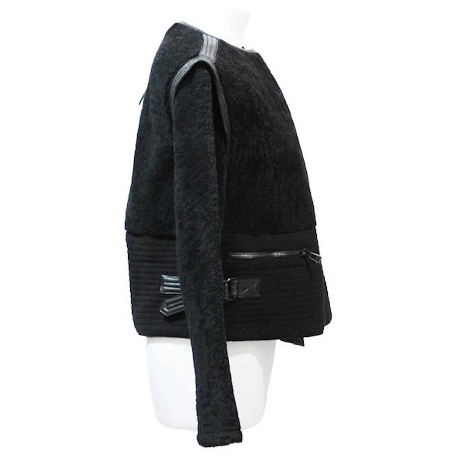 BLOUSON CHLOE EN MOUTON RETOURNE NOIR ET CUIR ZIP