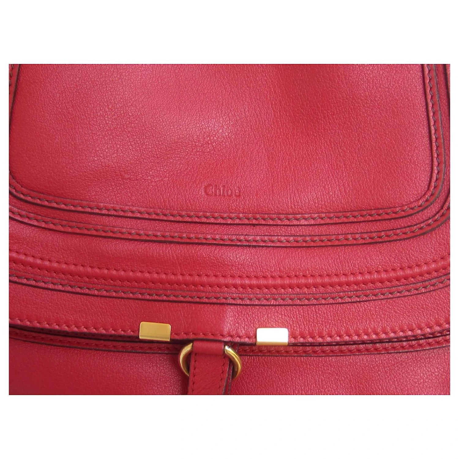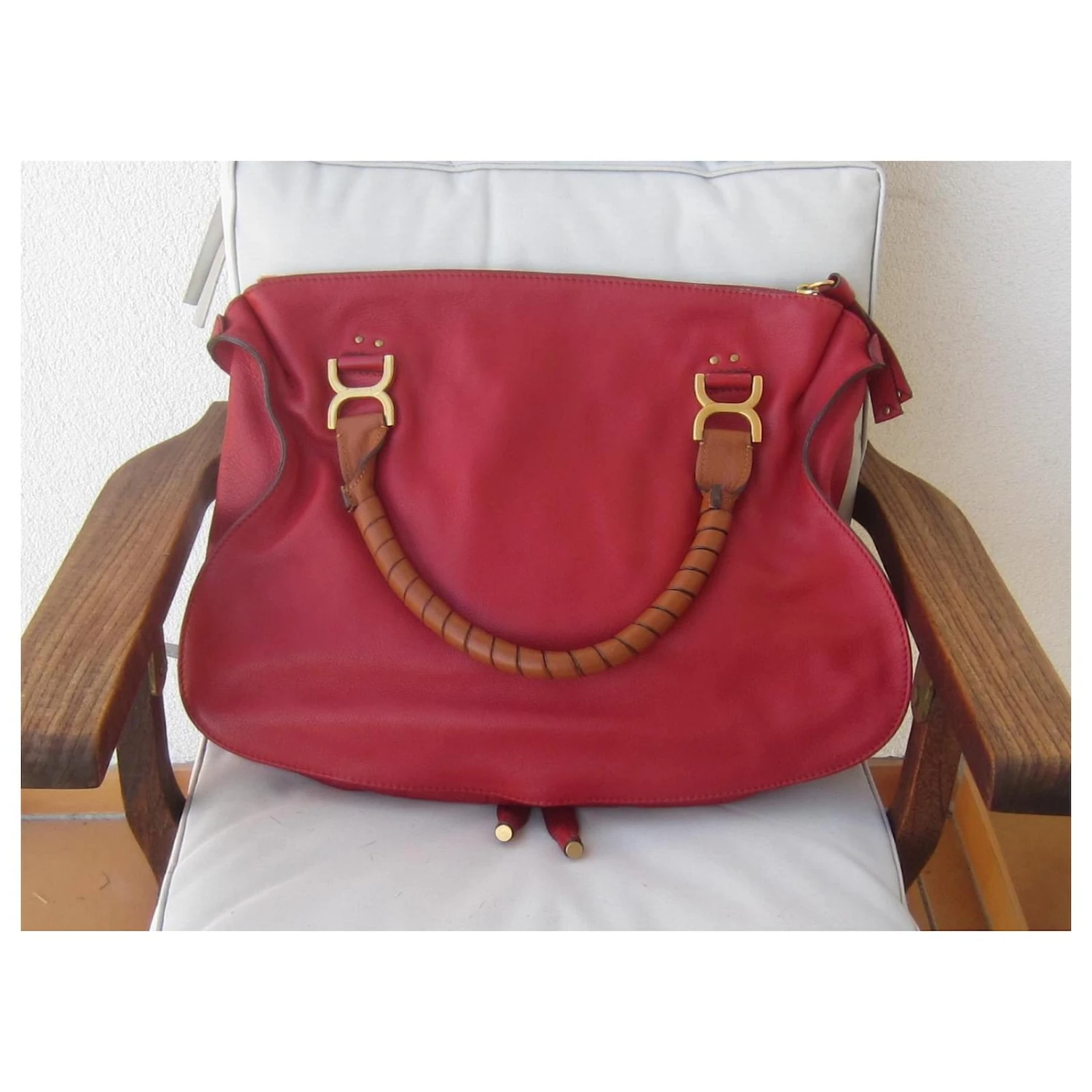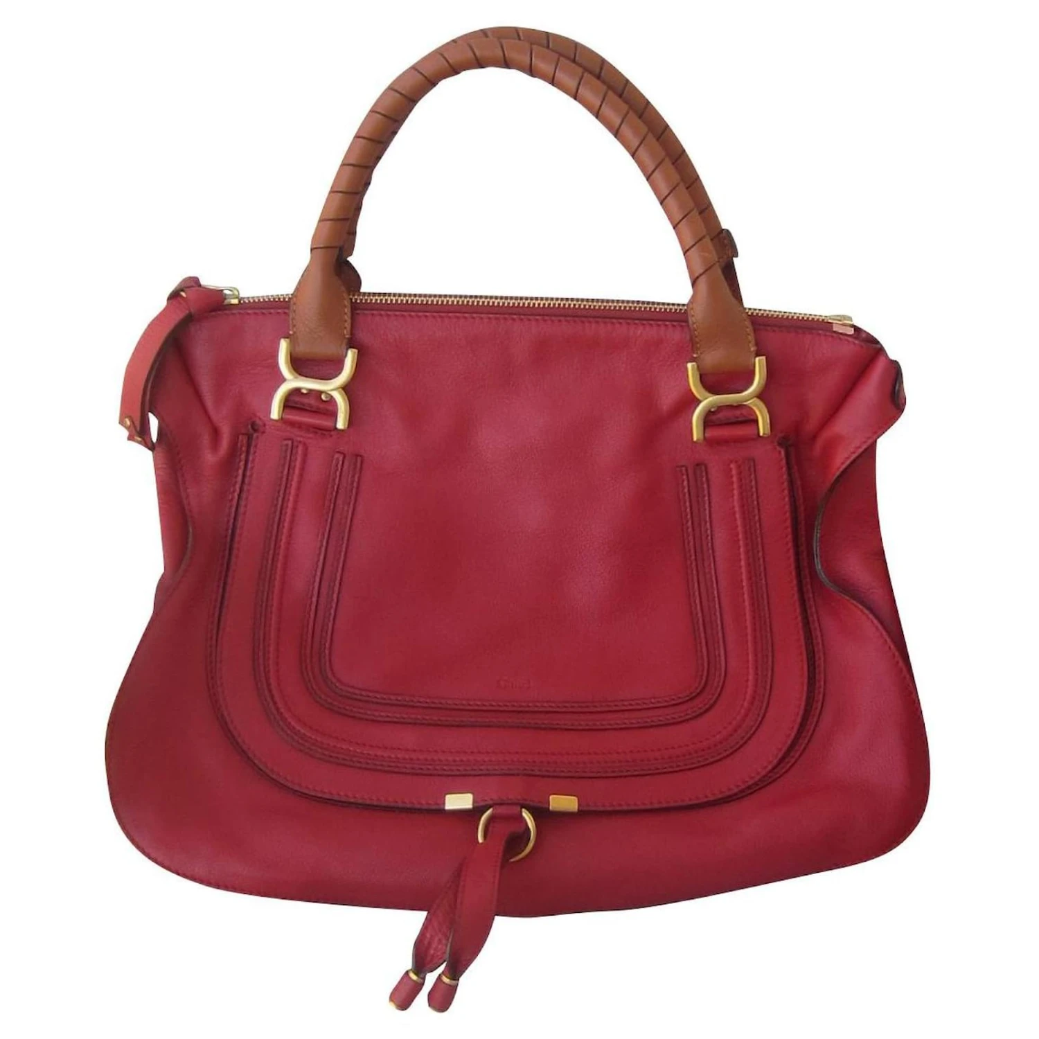 Chic sac à main Chloé Marcie grand modèle en cuir grainé rouge marron neuf
