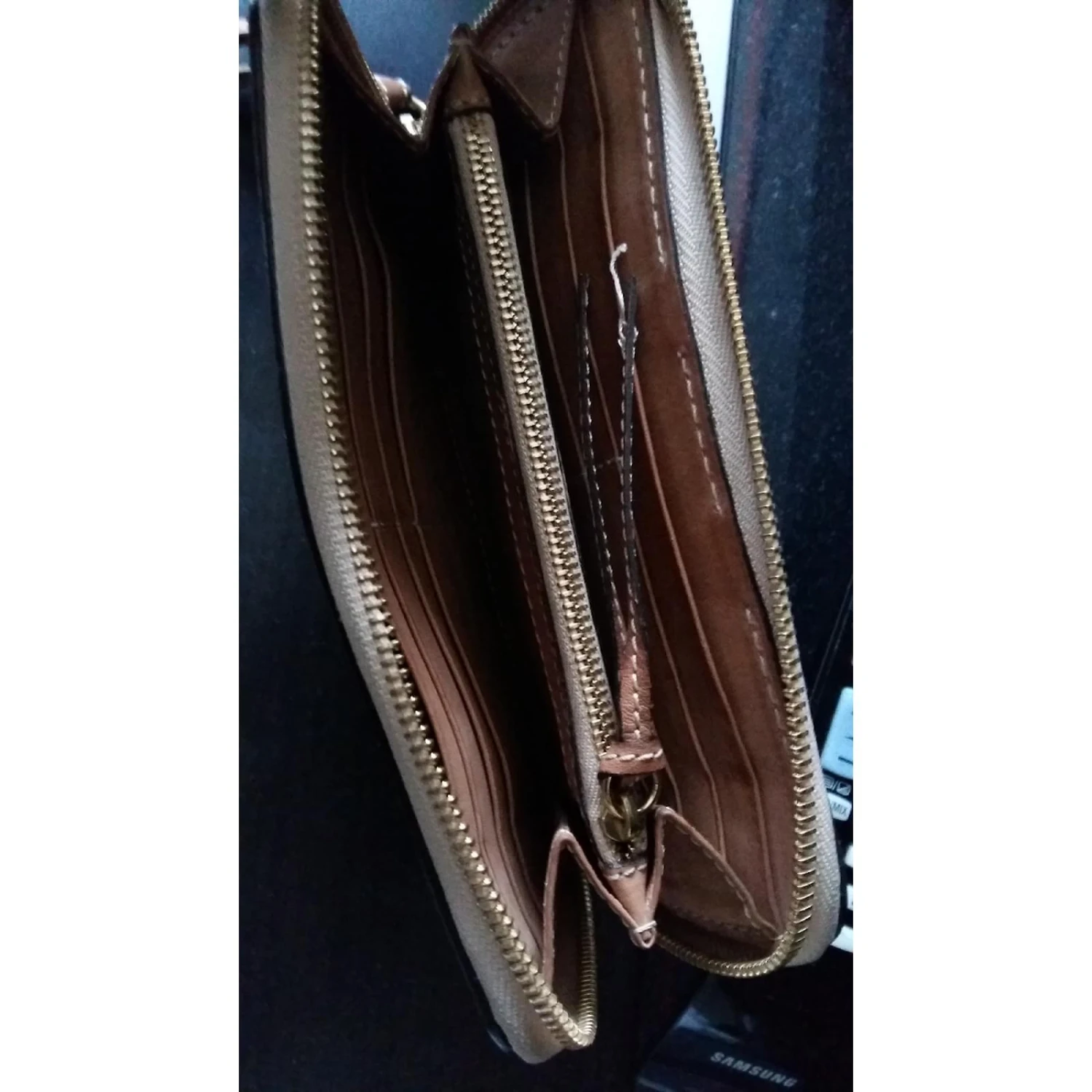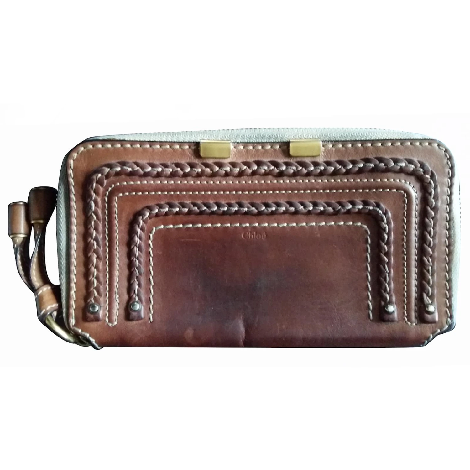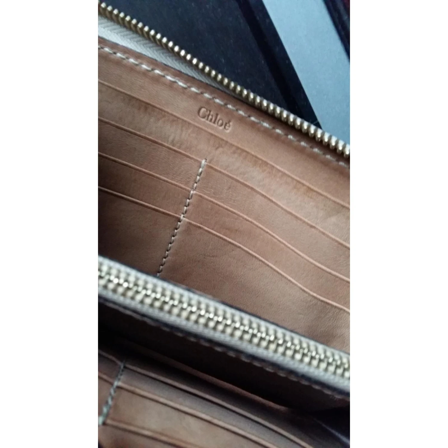 portefeuille Compagnon en cuir de veau signé CHLOE, intérieur : deux soufflets avec séparation zippée pour la monnaie, douze emplacements au format carte bancaire et deux poches plaquées pour reçus et pièces d’identité. En bon etat.