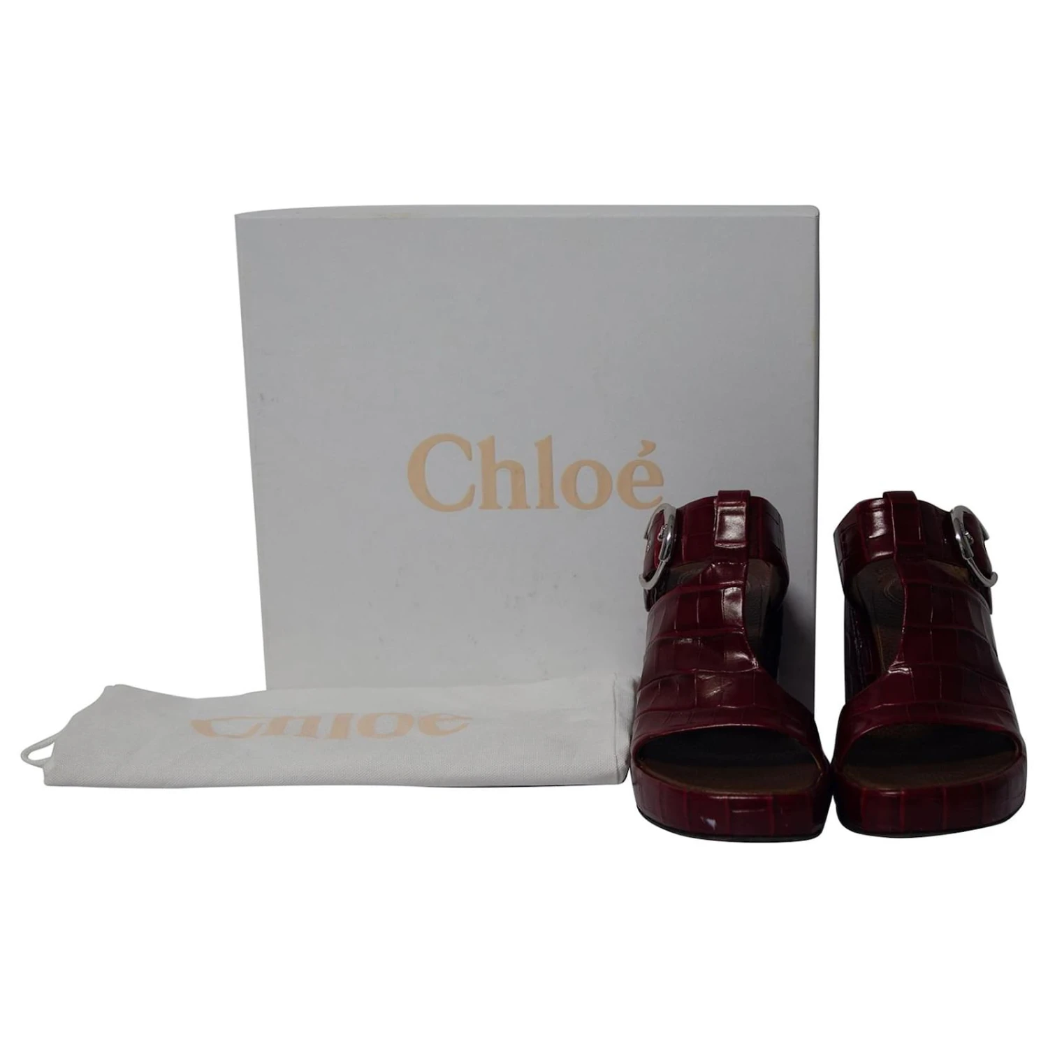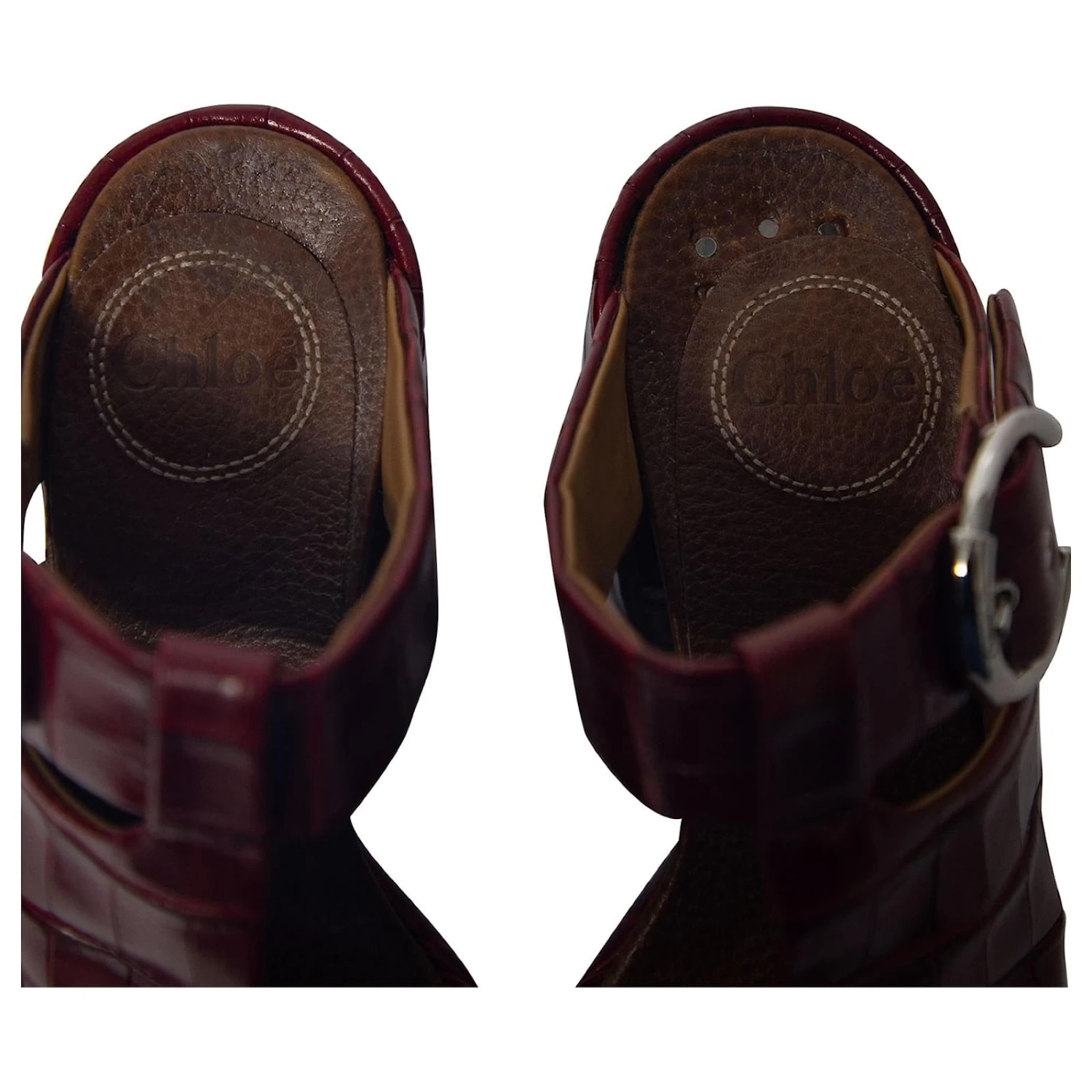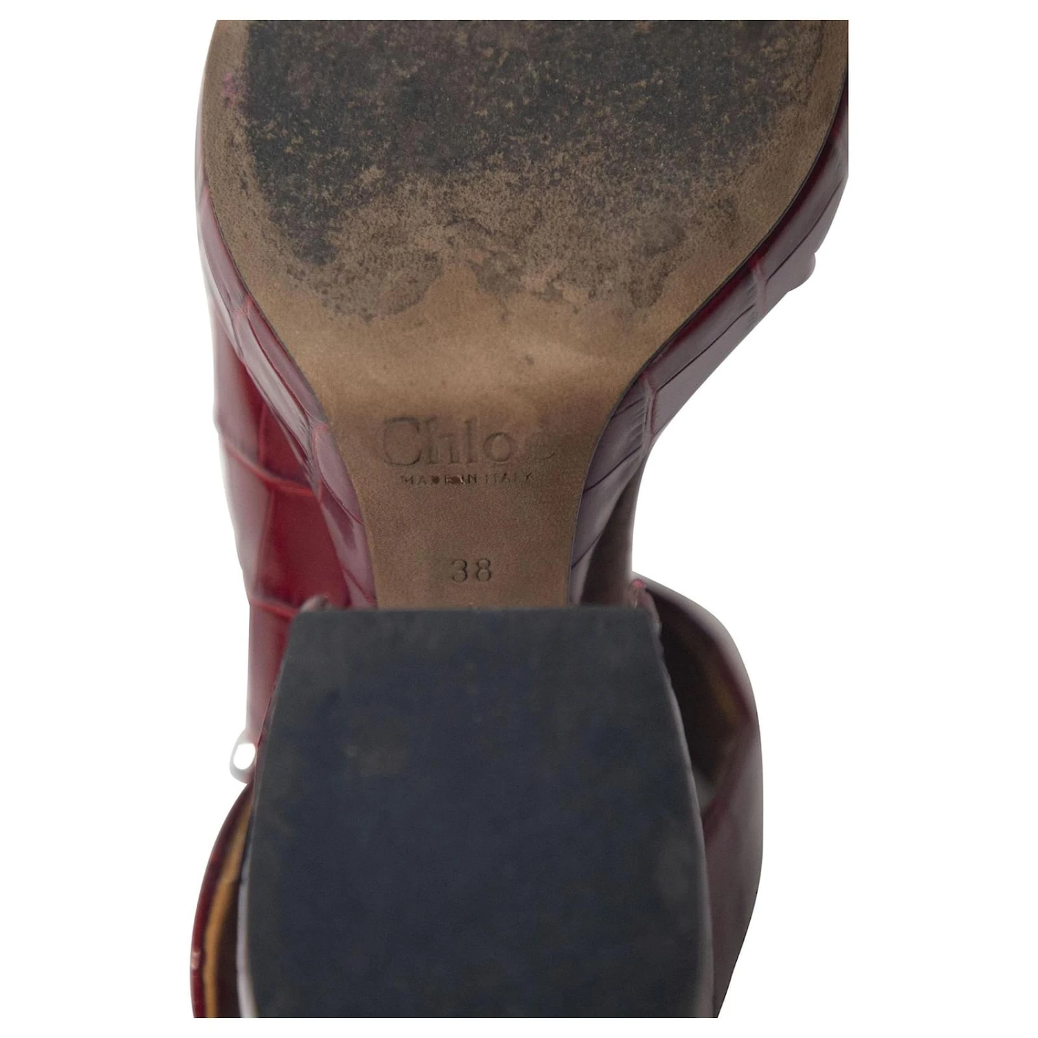 Chloé Mules Plateforme Effet Croco Wave en Cuir Rouge