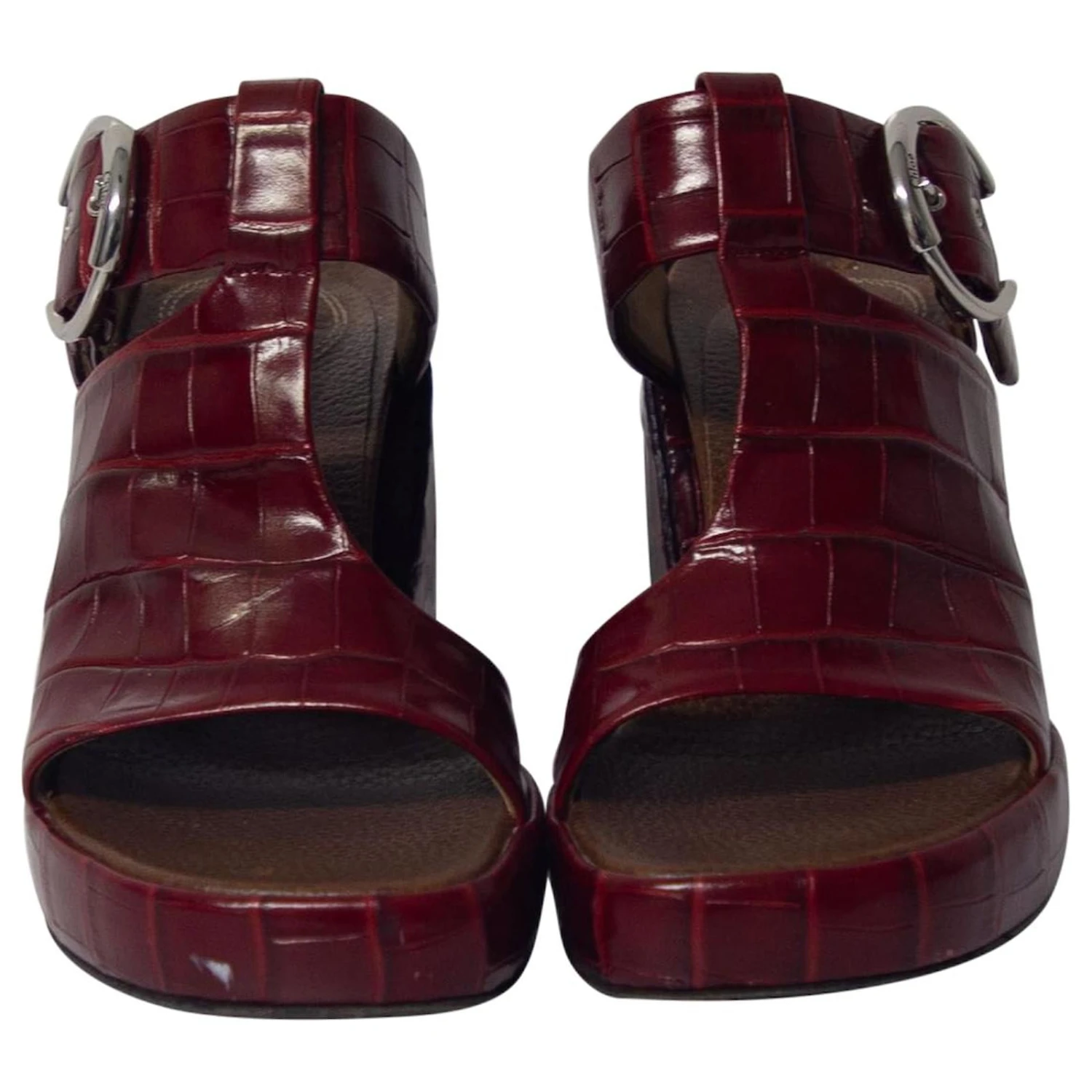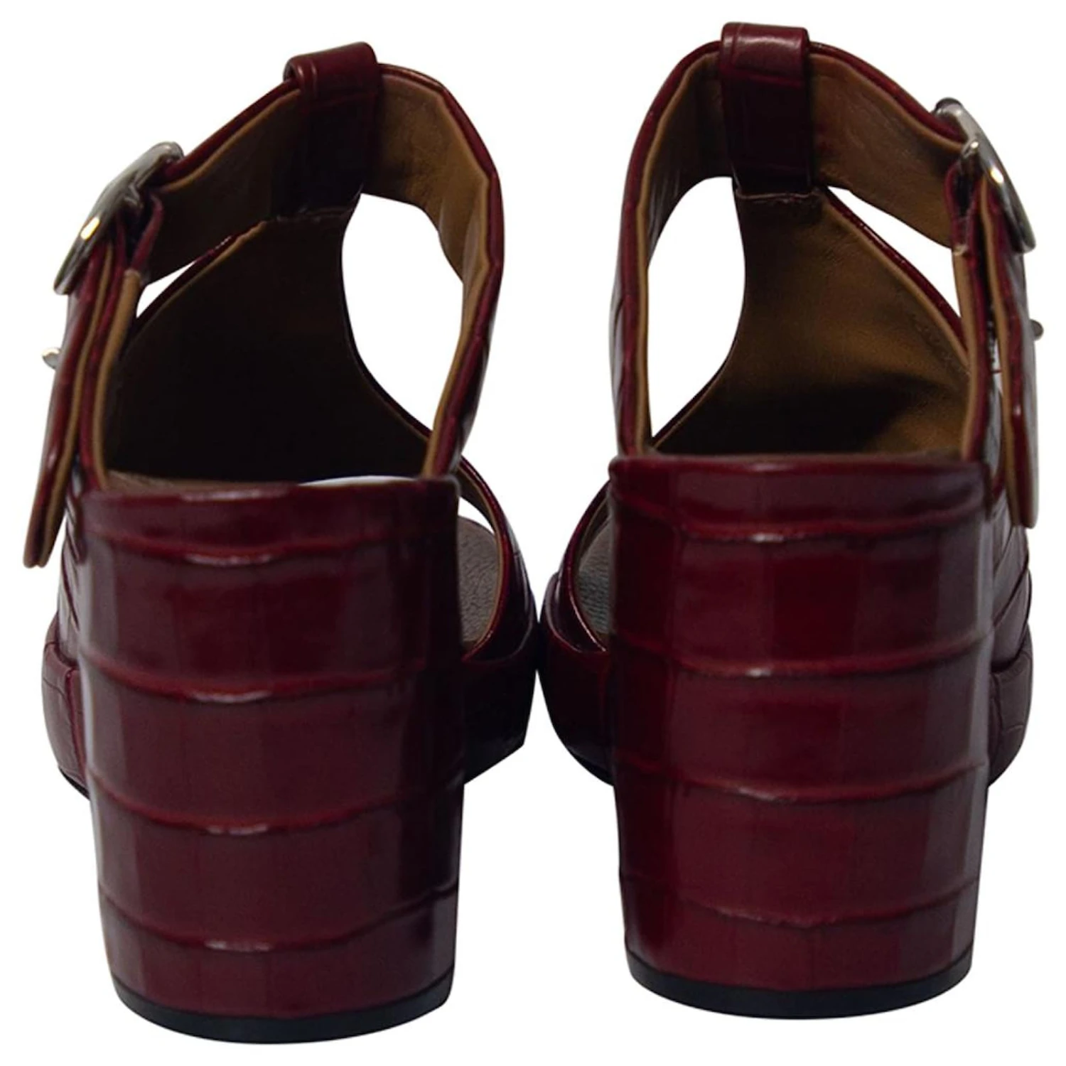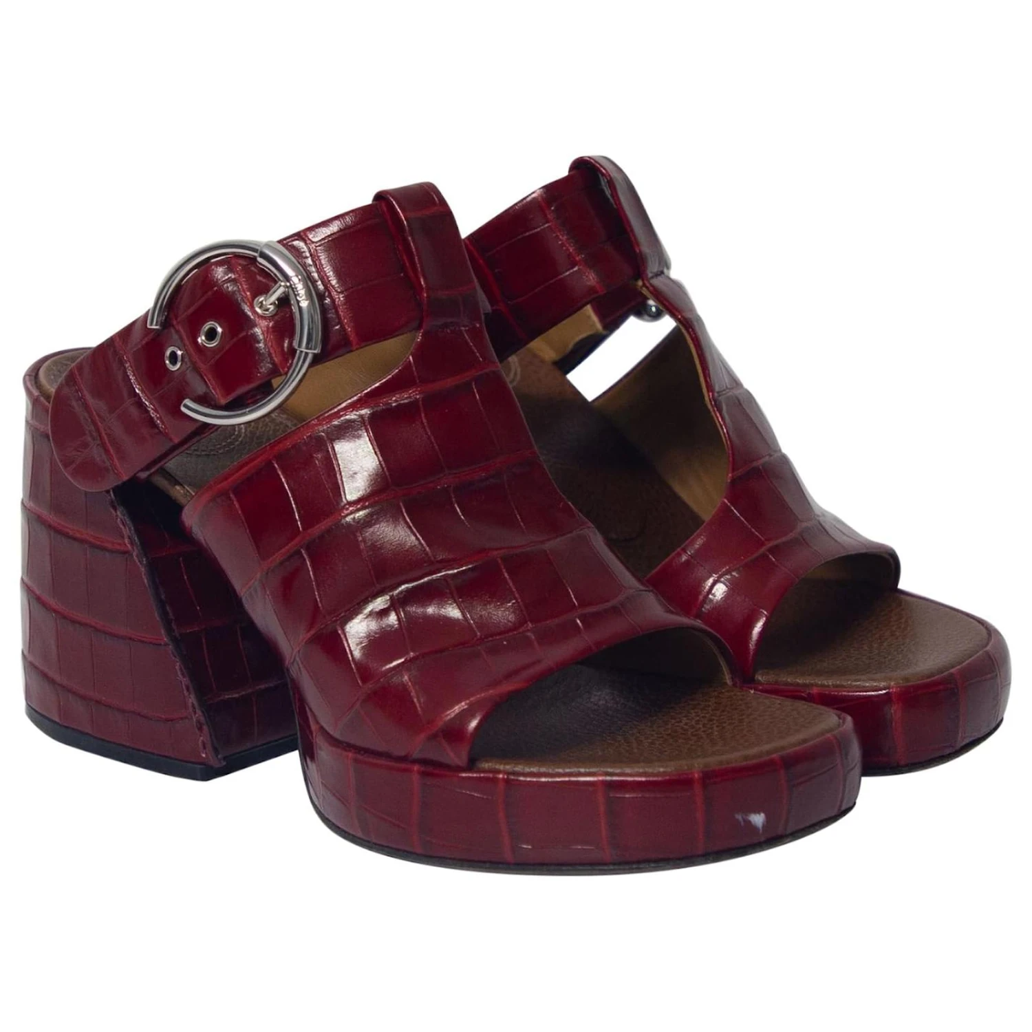 Chloé Mules Plateforme Effet Croco Wave en Cuir Rouge