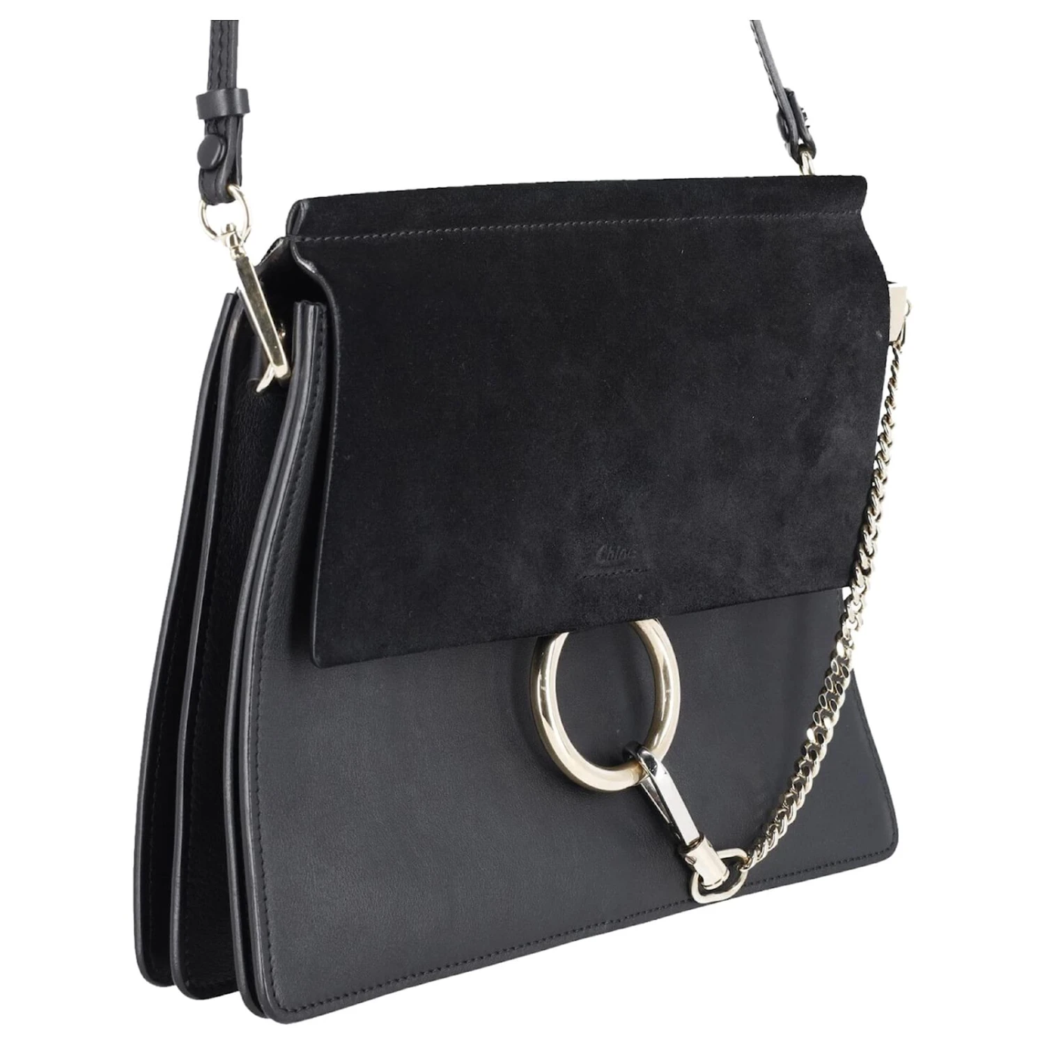 Chloé Sac à Bandoulière Chloe Faye En Daim Noir Et Cuir De Veau Cuir