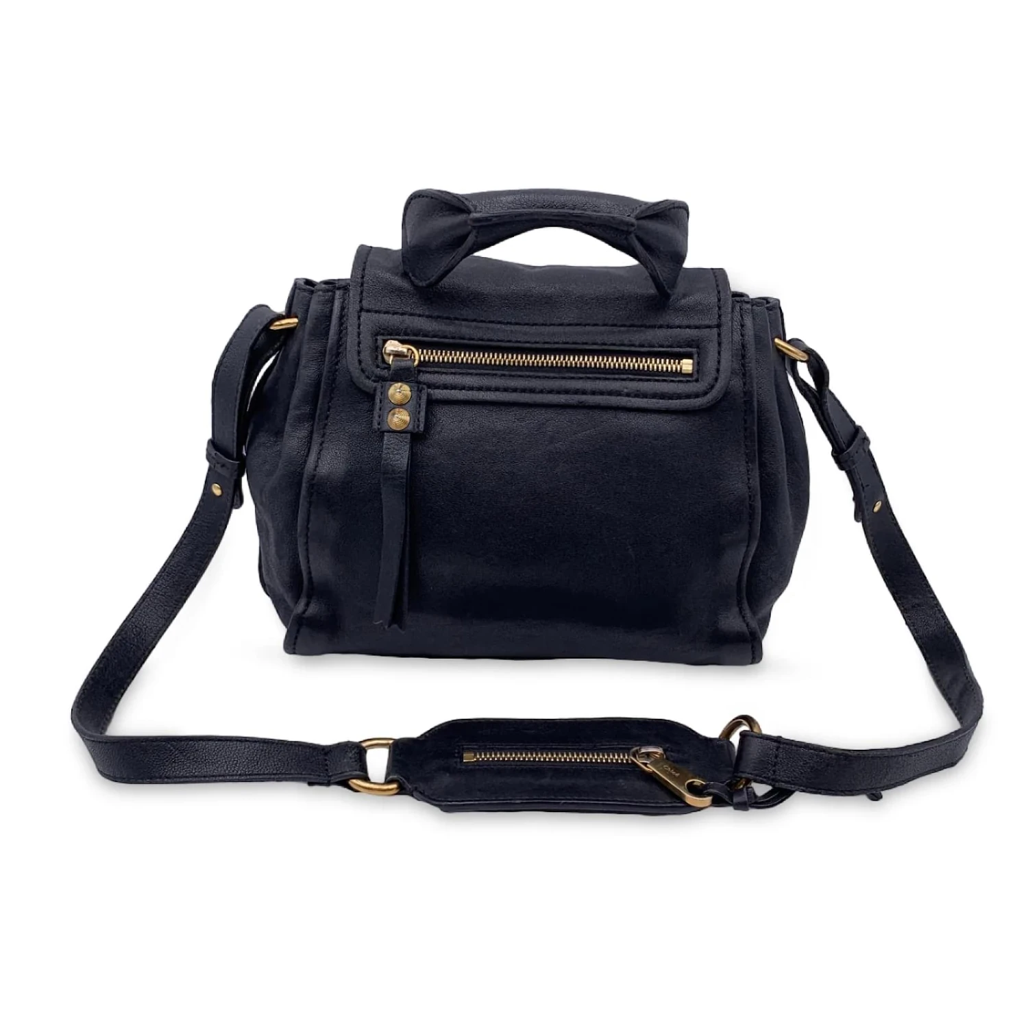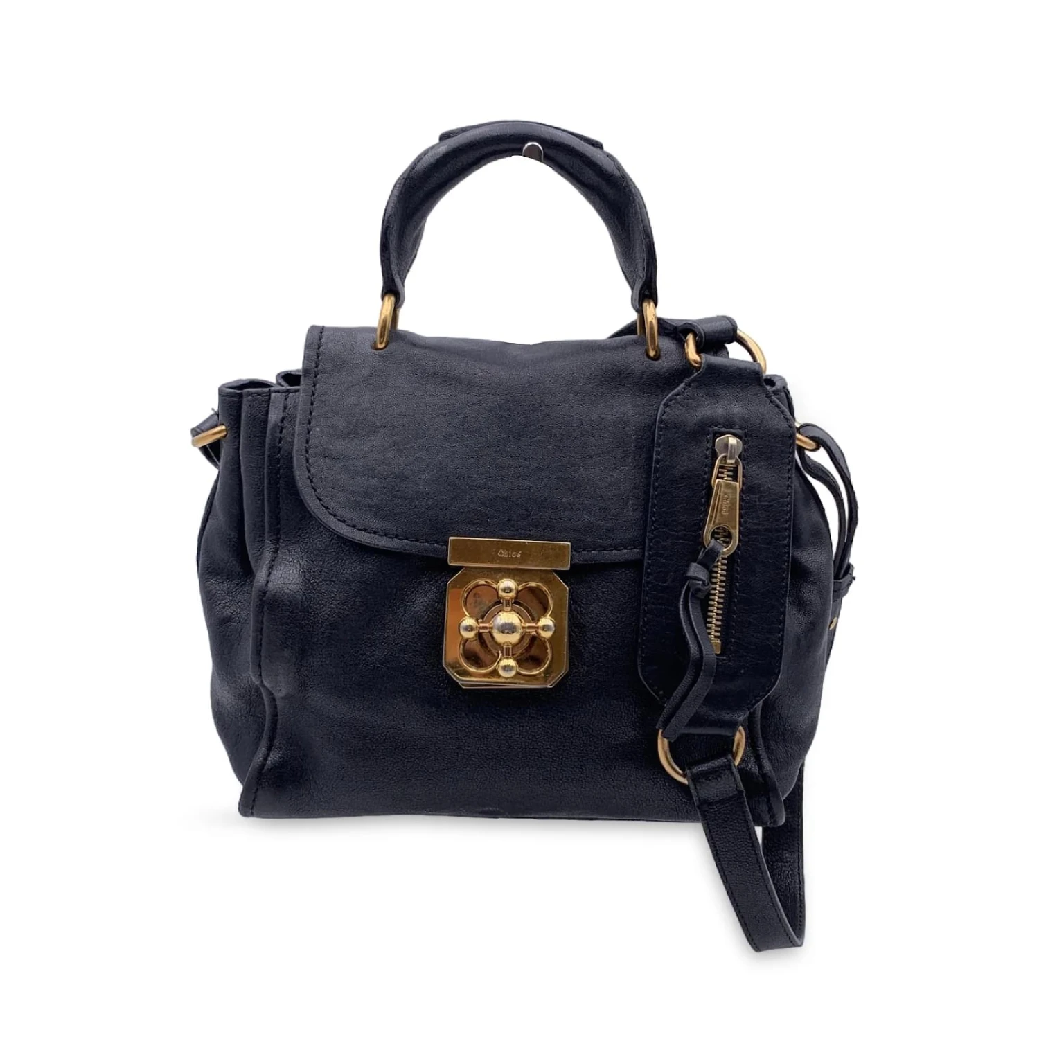 Chloé Sac à Main En Cuir Noir Elsie Bag Tote Satchel Avec Sangle