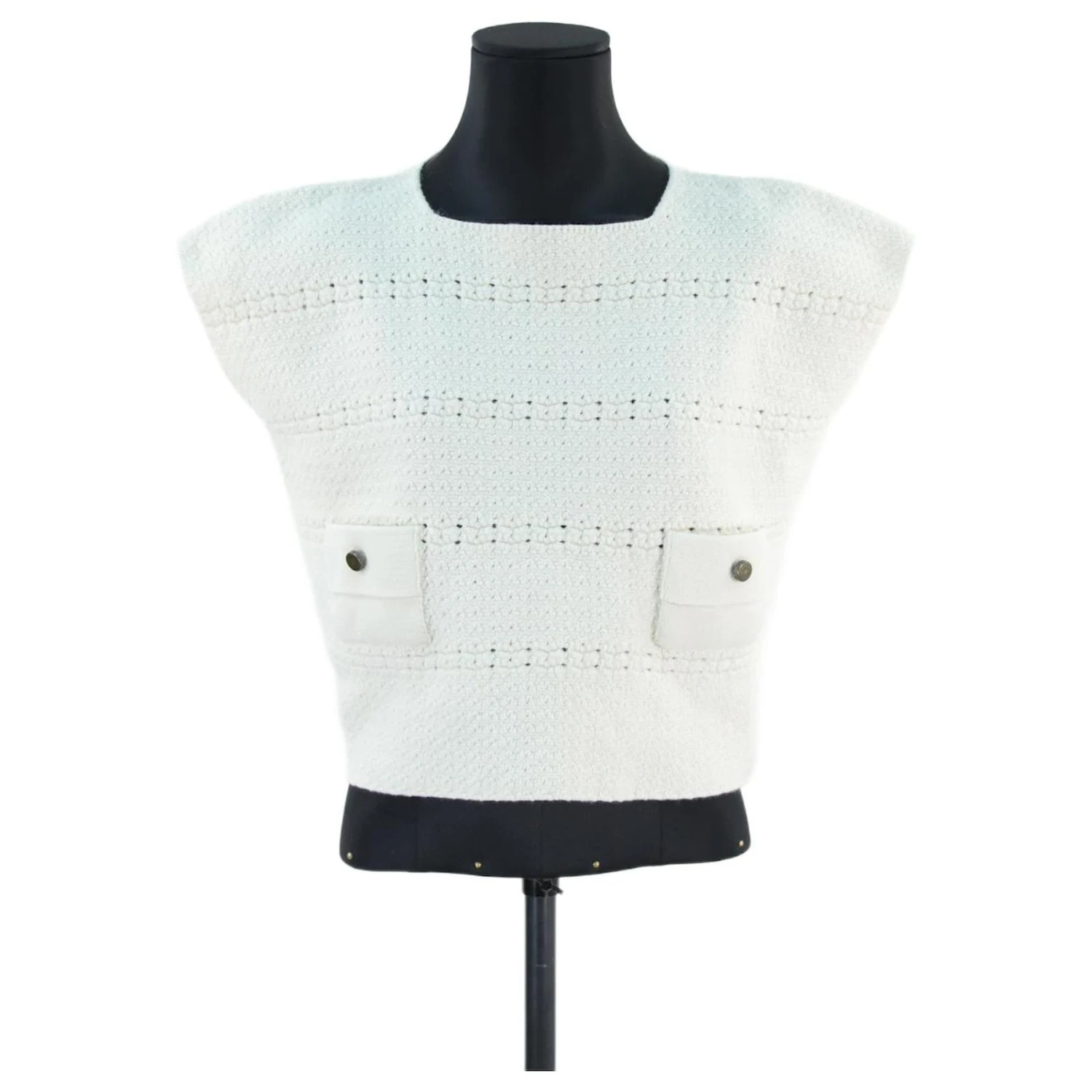 Pull en maille sans manches – See By Chloé – Épaules 56cm – Aisselles 55cm – Longueur 48cm – Chloé – Blanc – Taille 40 – 50% Coton 50% Acrylique – Très Bon État – Référence AB231