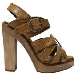 Sandales à lanières Chloé avec talons en bois en cuir fauve