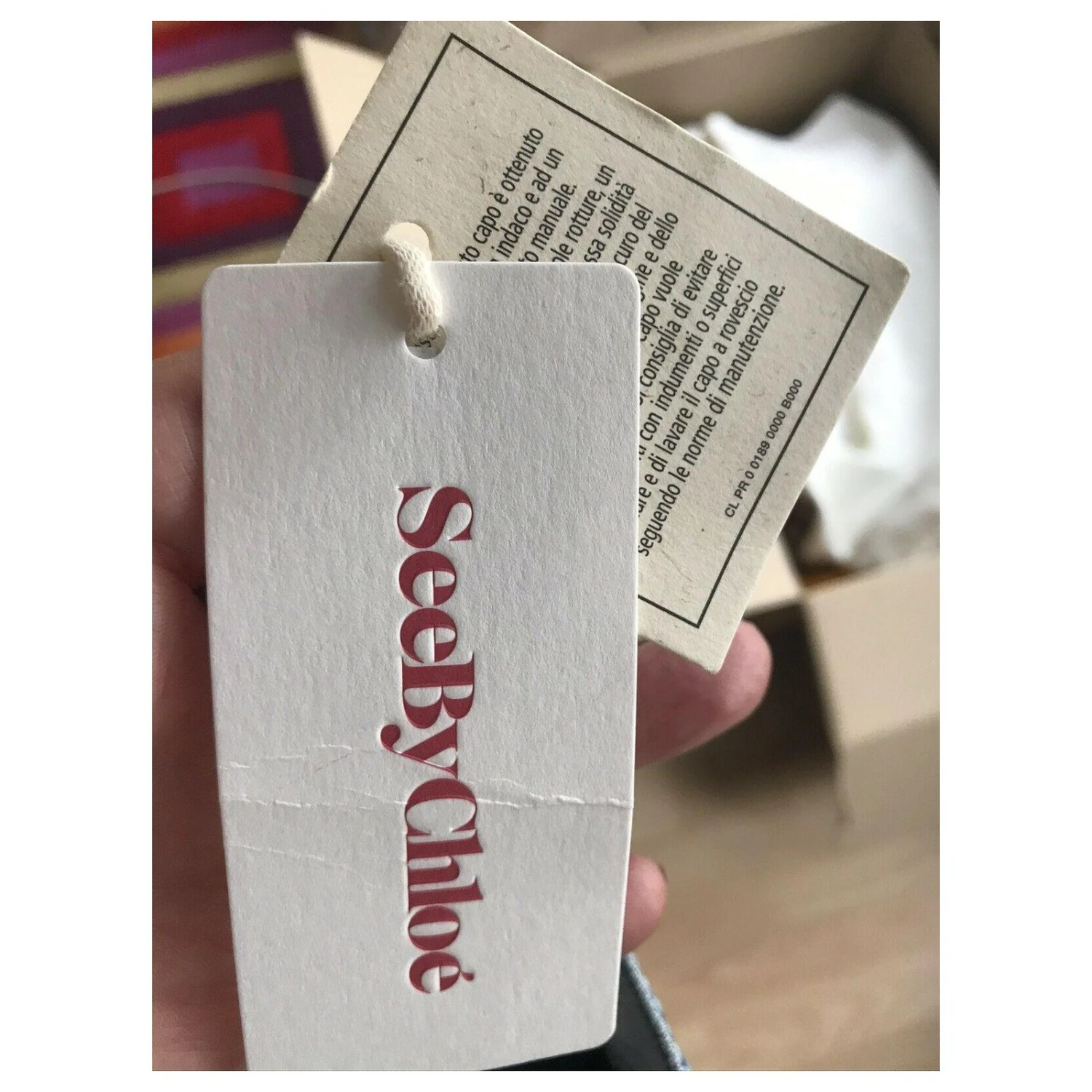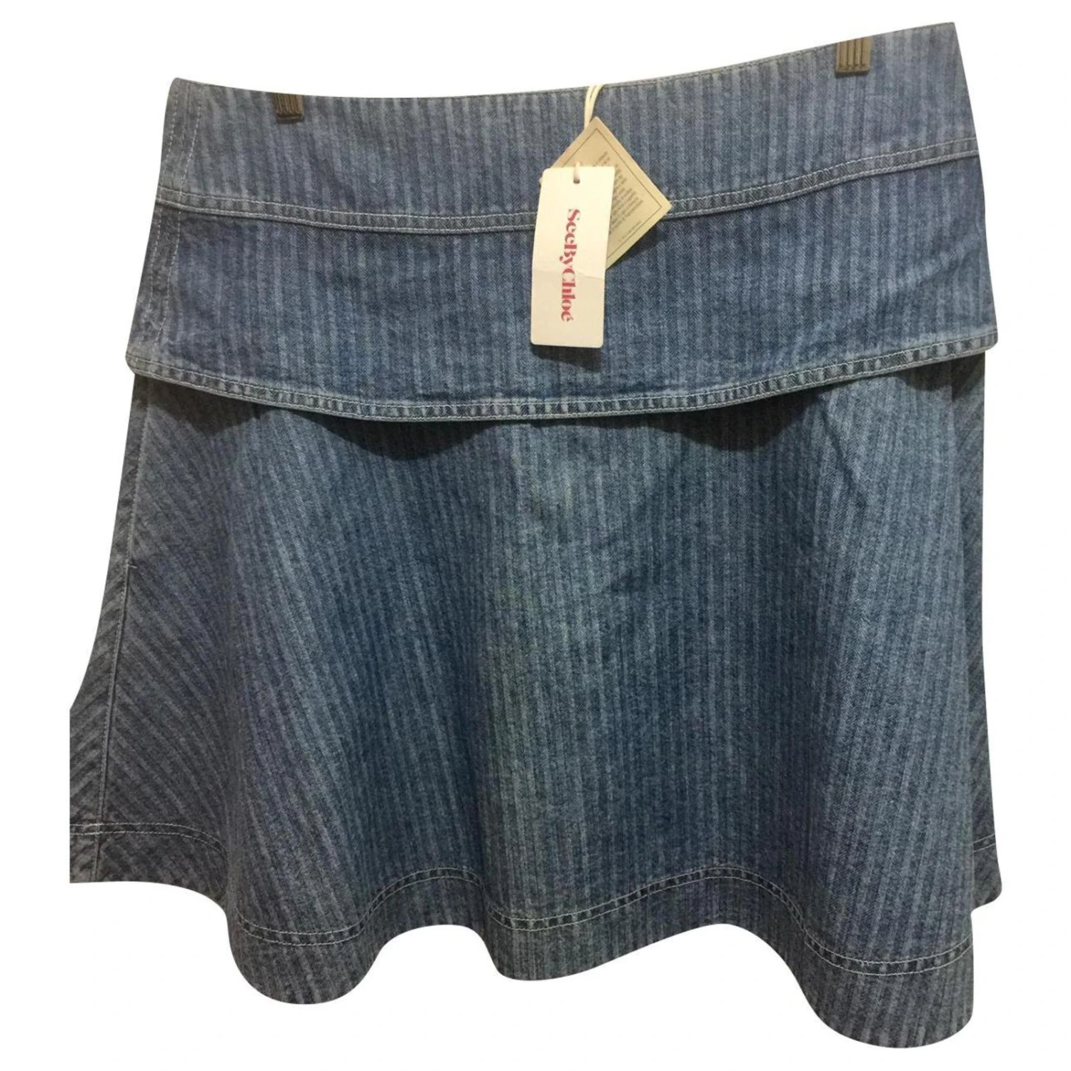 Jupe patineuse en jean See By Chloe, Nouveau avec tous les tags, le denim est légèrement à rayures, assez minceur. Superposé sur le dessus, 2 poches latérales cachées, Fermeture éclair exposée dans le dos.