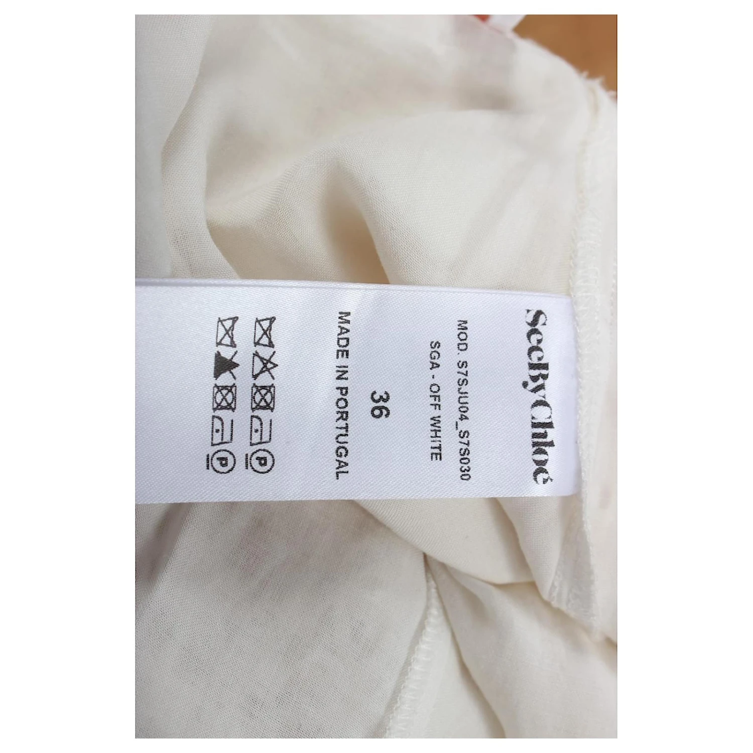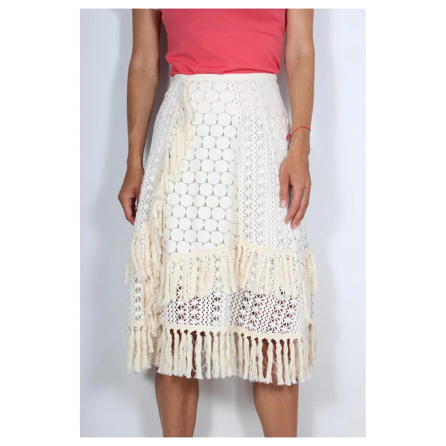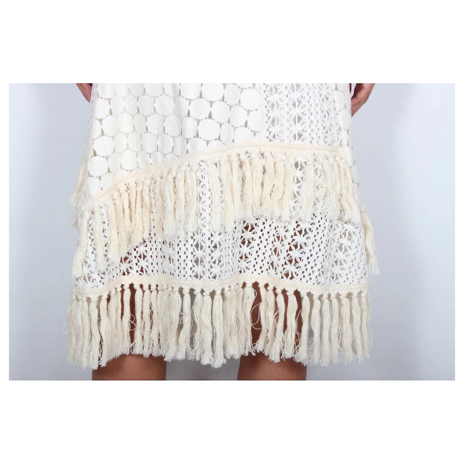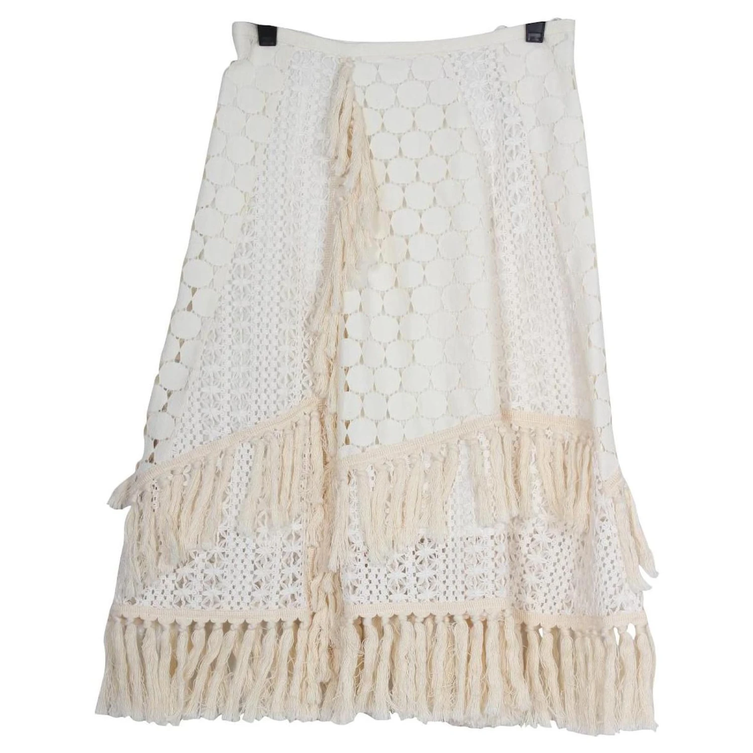 Jolie jupe See by Chloe à franges. Etat – Neuf sans étiquette. size 36. Composition : 65% polyestyer, 35% cotton, 81% cotton, 19% polyamide. Lining: 100% cotton. Mesures: longueur71cm, TAILLE-35cm, Les hanches-56cm