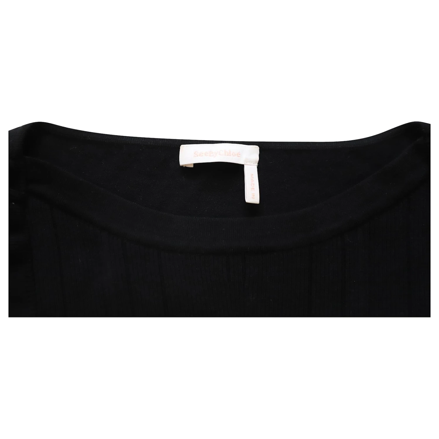 Conçu dans une teinte noire classique, ce pull See by Chloe est conçu dans une riche viscose. Il est livré avec des volants sur les côtés avant, Encolure ronde, et manches longues pour un look contemporain. À porter avec un pantalon blanc cassé pour un look raffiné et féminin.
