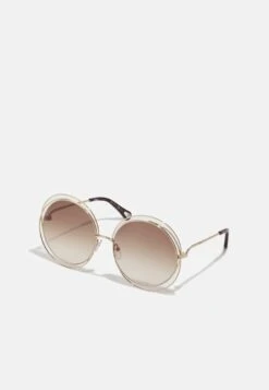 Chloé Carlina Oversized Round Metal Sunglasses – Lunettes De Soleil – Gold-Coloured/Brown