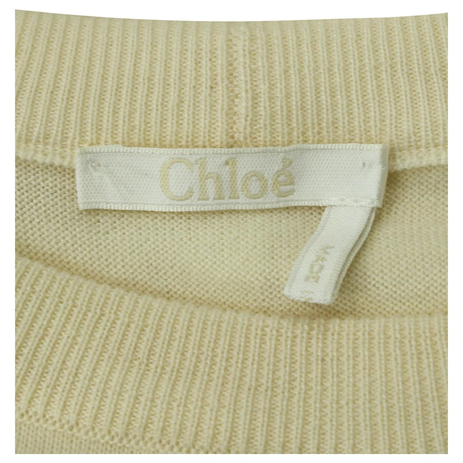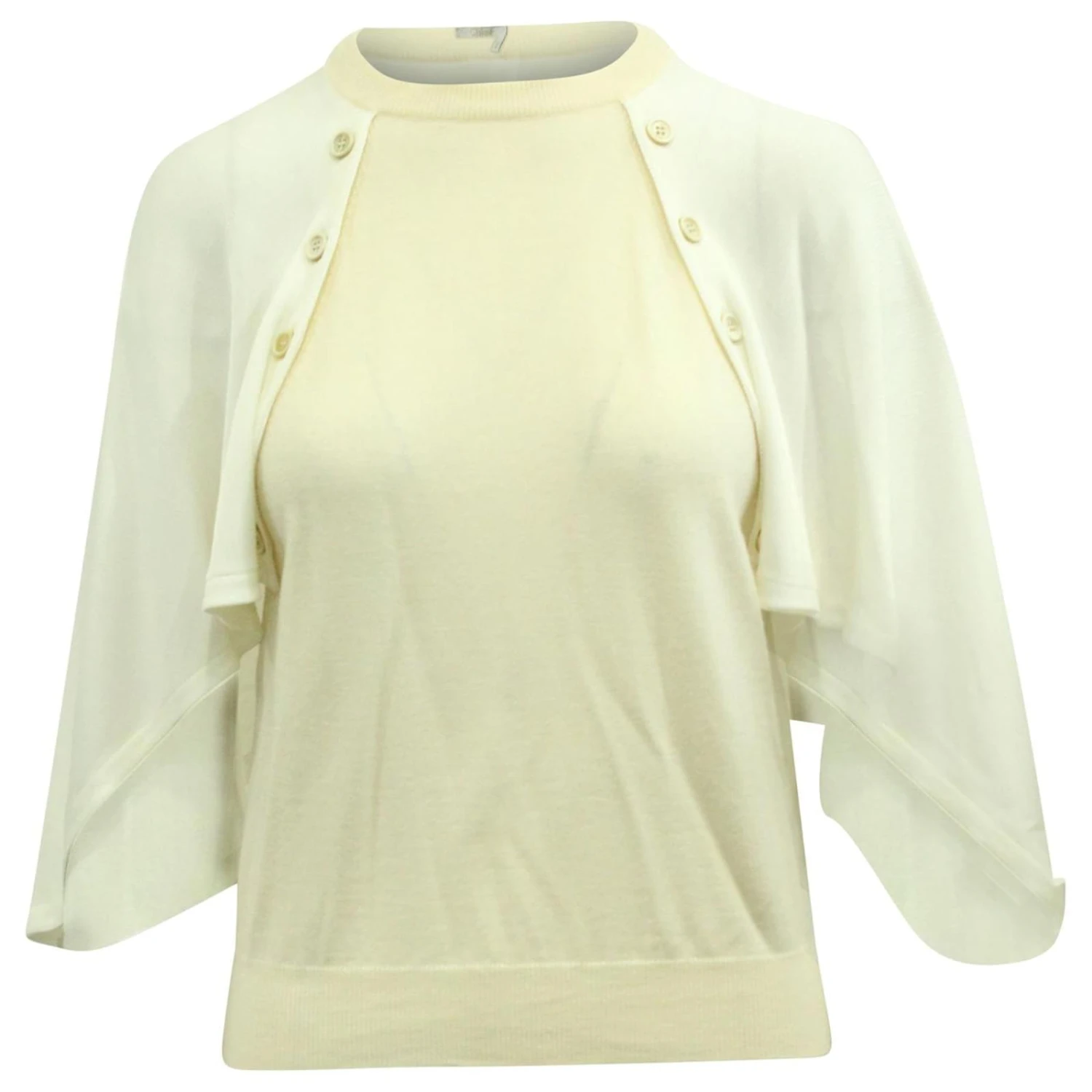 Ce haut Chloé est confectionné en laine écrue et doté d’une superposition effet cape en jersey pour des mouvements plus fluides.